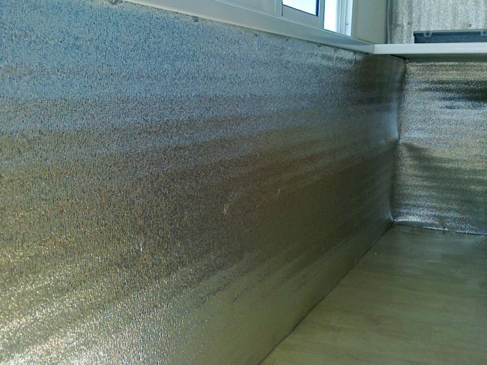Крепить его необходимо фольгированной стороной внутрь, стыки проклеивают алюминиевым скотчем.