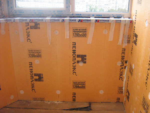 Любые стыки между конструкциями следует устранить монтажной пеной без толуола. Стыки между плитами утеплителя достаточно заклеить обыкновенной клейкой лентой. Далее утепление балкона пеноплексом включает создание пароизолирующей прослойки.