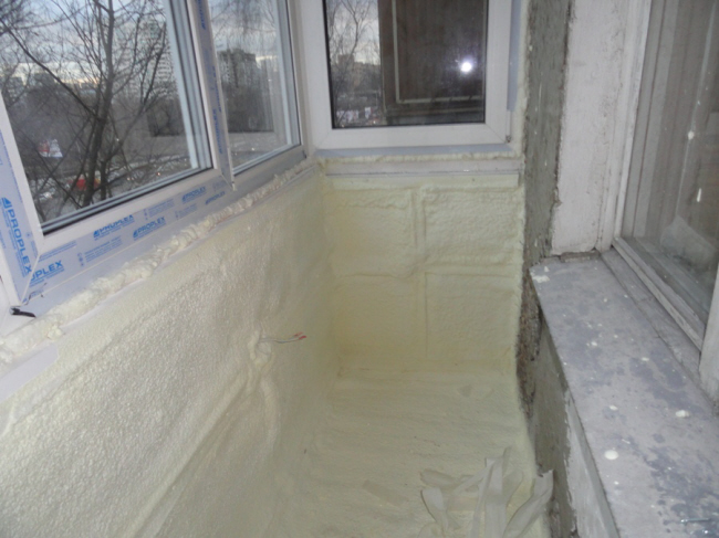 Например, при использовании обычных материалов нужно создавать гидроизоляцию и парозащитный слой. Утепление же балкона ППУ не требует этого: применяется один материал. В результате напыления образуется однородная бесшовная поверхность без «мостиков холода».