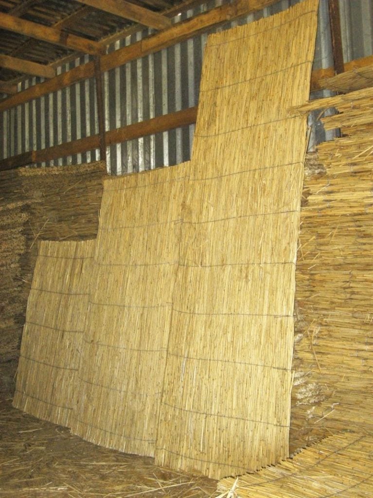 Камышовые плиты – лёгкий негорючий материал с высокими теплоизоляционными характеристиками. В зависимости от производителя толщина блоков из камыша может достигать 15 см. Поскольку это природный материал, то перед монтажом рекомендуется пропитать плиты раствором железного купороса от насекомых.