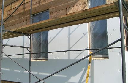 Утепление щитового дома снаружи начинаю с тщательной подготовки поверхности. Для этого фасады очищают, удаляют все неровности. Для выравнивания на поверхность наносят слой штукатурки, затем ее грунтуют.