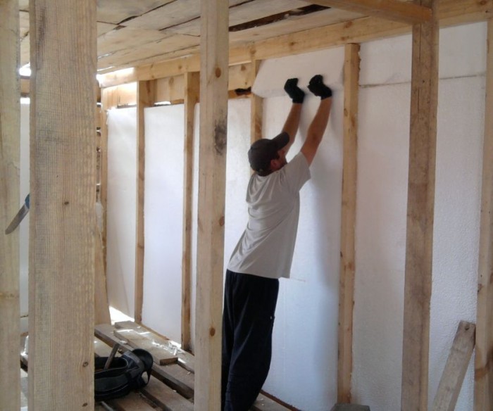 Следующий этап – установка теплоизоляционного материала. Для этого на стенную поверхность монтируют каркас из деревянных или металлических планок, расположенных на расстоянии, равном ширине утеплителя.