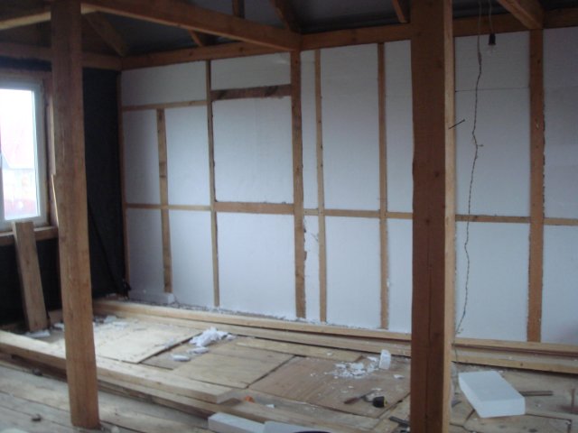 - поверх нее устанавливаются и закрепляются древесные плиты, для внутренней поверхности может быть использован гипсокартон;
