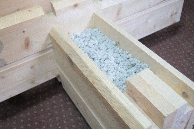 Утеплитель закачивают в профилированный брус либо на заводе, либо непосредственно на строительной площадке. Для этой цели служит воздух, пенополиуретан или эковата.