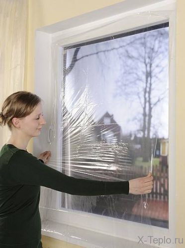 Существует еще один популярный вариант утепления окон, когда применяется пленка. Для этого можно купить специальные пленки. Они не дешевые и продаются не везде. Можно воспользоваться и обычной полиэтиленовой пленкой. Пленочный утеплитель принято крепить снаружи. Внутреннюю сторону окна утепляют пленкой только тогда, когда подобраться к окну снаружи невозможно.