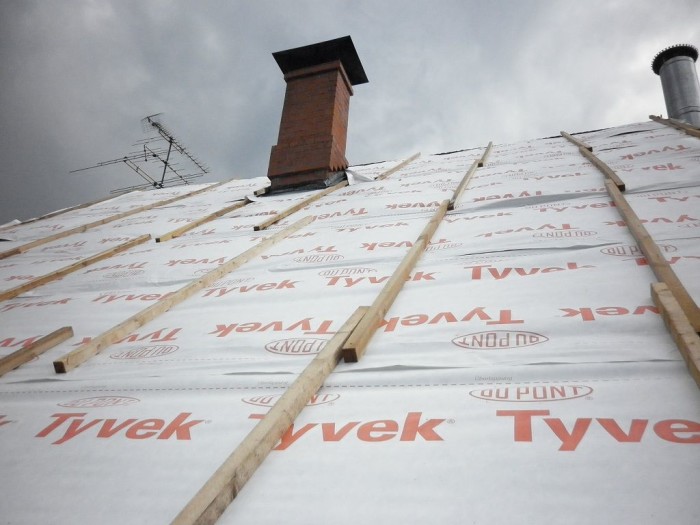 Гидроизоляционный слой делают как под кровельными листами, так и над утеплительным материалом.