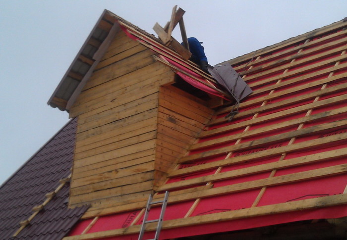 Таким образом, кровельный «пирог» состоит из следующих слоёв: паровая изоляция, утеплительный материал, паропроницаемая мембрана, древесная обрешётка, стальная черепица.