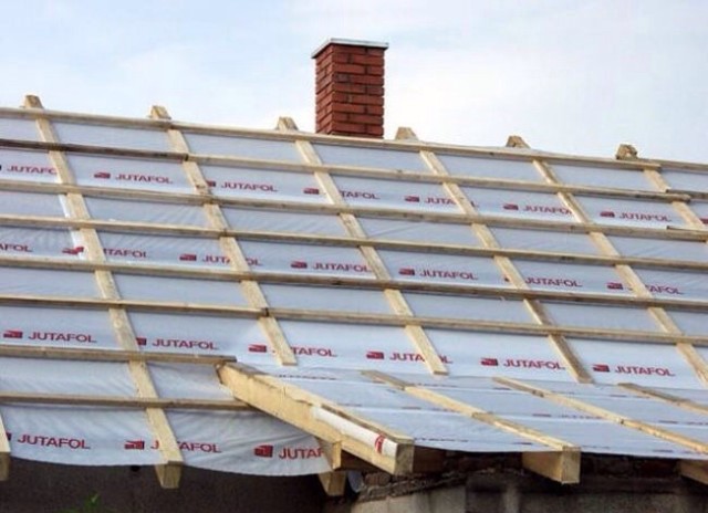 Самый простой вариант – закрыть вату по обрешетке рулонной пароизоляцией. Этот материал крепится к брусам с помощью металлических скоб и степлера.