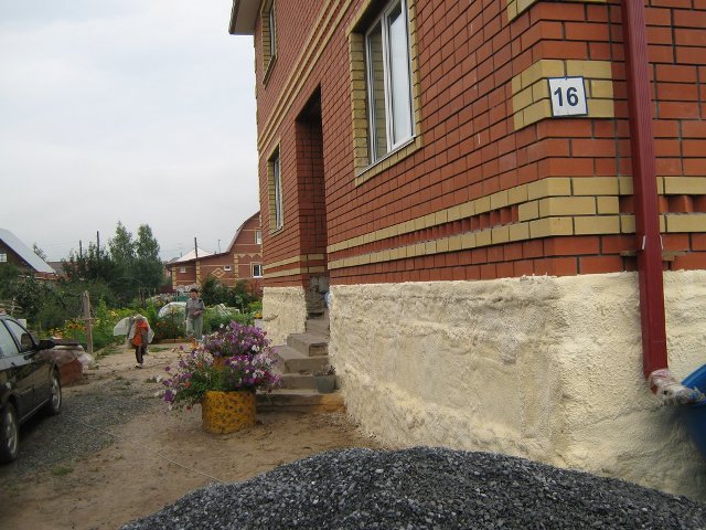 При строительстве дома обычно устраивают песчаную подушку, дренаж и гидроизоляцию фундамента. Также необходимо утеплять фундамент. Такая практика появилась недавно, и теперь все чаще можно увидеть, что во избежание появления трещин на стенах, а также перекоса дверных и оконных проемов, строители наносят изолирующий материал на фундаментные блоки. Утепление пенополиуретаном защитит фундамент от: