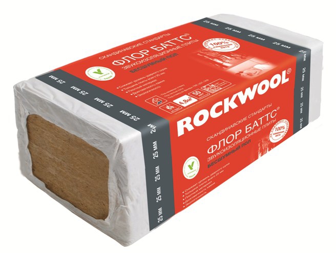 - Флор Баттс – жесткие теплоизолирующие плиты из каменной ваты, применяющиеся для изготовления плавающих акустических полов;